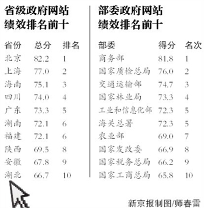 昨日,工業(yè)與信息化部下屬單位、中國軟件評測中心發(fā)布《2012年中國政府網(wǎng)站績效評估總報告》,北京以總分82.2分列省級政府門戶網(wǎng)站績效首位。分項得分中,北京政府網(wǎng)站社保服務(wù)指數(shù)得分最高,其次是醫(yī)療服務(wù)指數(shù)。